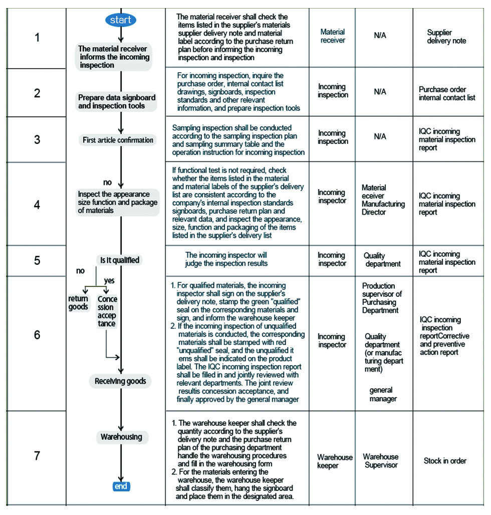 The material receiver shall check the supplier’s materials, the supplier’s delivery note and the items listed in the material label according to the purchase return plan, and then notify the incoming inspection and inspection.
